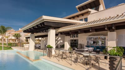 Hjärtat på anläggningen är det imponerande klubbhuset på 2 000 kvadratmeter. Här finns shop, restaurang och bar, men bäst av allt är den stora terrassen med utsikt över banan och bergen. Det är den perfekta platsen för att mingla med nya golfvänner och gå igenom dagens runda över en svalkande dryck.