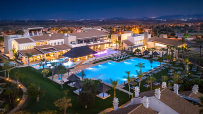 Hacienda del Álamo Hotel är ett nyrenoverat fyrstjärnigt hotell i modern stil. Här väntar ett fint boende i fräscha och smakfullt inredda rum som samtliga har balkong eller terrass . Hotellet ligger precis i anslutning till 18-hålsanläggningen vilket borgar för en bekväm och smidig vistelse. Hotellet har ombonade gemensamma ytor och i den stora lobbyn slår du dig bekvämt ner i de stora sofforna. Då hotellet är byggt i bungalow-stil blir lobbyn navet, och du har där direkt anslutning till restaurang, bar, reception och poolområdet. På hotellet finns utomhuspool och gym. För dig som vill unna de trötta golfmusklerna lite extra avkoppling slår vi ett slag för poolområdets terrass, som bjuder på härlig utsikt över hotellområdet och den stora poolen. I resan ingår halvpension och hotellet serverar frukost- och middagsbuffé av hög klass med alla möjliga läckerheter som garanterat gör smaklökarna belåtna. Middagsbuffén byter dessutom tema under veckan så variationsrikedomen på maten är stor.